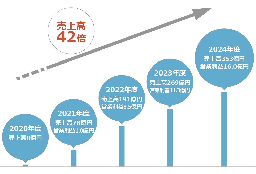2019年12月から本格的に事業がスタートしました。2024年度の売上高は2020年度売上高の約42倍。成熟産業とされる住宅業界で、珍しい急成長を遂げています。